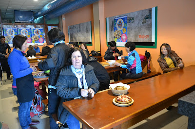 Este clima es consustancial con este pueblo. Aquí las pocas casas que hay, están dedicadas a facilitar la estancia al peregrino. Desde lavanderías, supermercado, restaurante, camas, etc. Estuvimos tomando un algo calentito y el ambiente entre peregrinos contando sus anécdotas, al calor de un fogón de leña, era entrañable, invitaba a quedarse.